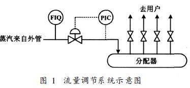渦街流量計(jì)與調(diào)節(jié)閥(減壓閥)安裝設(shè)計(jì)在同一根管道上,兩者經(jīng)常容易碰到。如圖1所示,來(lái)自鍋爐房或熱力公司的外來(lái)蒸汽,在測(cè)量流量后經(jīng)穩(wěn)壓閥(或減壓閥),進(jìn)入分配器,供各用汽設(shè)備使用。在流量調(diào)節(jié)系統(tǒng)中,流量計(jì)與調(diào)節(jié)閥直接連接,如圖2所示。