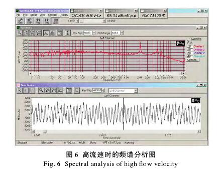如圖 5 所示,漏波現(xiàn)象使流量偏小 44.3%。針對(duì)這一現(xiàn)象,采用頻譜分析+動(dòng)態(tài)濾波,改善信號(hào)波動(dòng),消除“漏波”現(xiàn)象。信號(hào)可以從時(shí)域分析,也可以從頻域分析。時(shí)域的信號(hào)圖像,是以時(shí)間軸為橫軸;頻域的信號(hào)圖像,是以頻率值作為橫軸。信號(hào)的時(shí)域分析主要側(cè)重于信號(hào)的直觀印象,例如信號(hào)的周期,信號(hào)在某一時(shí)間點(diǎn)的幅值等。信號(hào)的頻域分析,是采用傅里葉變換,將 X(t)變換成 X(f)。具體的變換方法在這里不再贅述。信號(hào)的頻譜圖表明了信號(hào)在不同頻率分量成分的大小,比時(shí)域圖像提供更具體更豐富的頻域圖像。在 Pico Scope 示波器中,可以利用其頻譜分析的功能來觀察信號(hào)的頻譜。信號(hào)的濾波處理通常是信號(hào)處理中常用的方法。信號(hào)的濾波主要是獲得自己想要的信號(hào),并且過濾掉不符合實(shí)驗(yàn)要求的信號(hào)。通常有低通、高通、帶通、帶阻這幾種方式。實(shí)際應(yīng)用中,通常是設(shè)計(jì)濾波電路對(duì)電路進(jìn)行濾波。在測(cè)試測(cè)量中,往往需要的是濾掉信號(hào)中的雜波。盡可能排除影響因素,通過對(duì)鍋爐供暖流量計(jì)傳感器原始信號(hào)直接進(jìn)行實(shí)時(shí)頻譜分析,得出超高流速時(shí)的流量值。