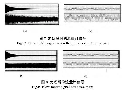 圖 7(b)為展開的視圖。圖 8 為處理后流量計(jì)輸出的傳感器信號(hào)和放大器輸出信號(hào)。圖 8(a)上部為傳感器輸出的原始信號(hào),下部為放大器輸出信號(hào);