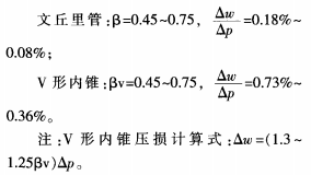 標(biāo)準(zhǔn)節(jié)流裝置(孔板、噴嘴和文丘里管)和V形內(nèi)錐節(jié)流裝置的壓損如下: