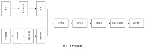 1.1 偏心爐+LF 爐雙聯(lián)冶煉工藝,鋼包冷調(diào)、熱裝蒸汽流量計(jì)工藝路線圖簡(jiǎn)介如圖 1。