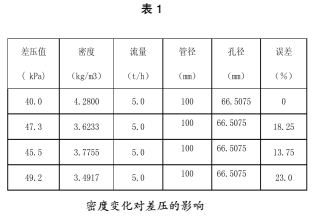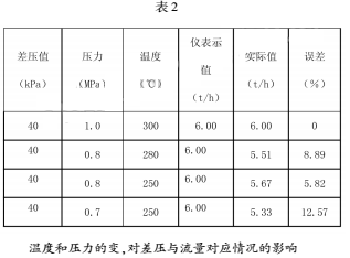 從表2中可以看出,在相同的差壓下,由于蒸汽的溫度和壓力的變化,即蒸汽密度的變化。相同的差壓所對(duì)應(yīng)的流量是不同的。*大變化量可達(dá)到12.57%。