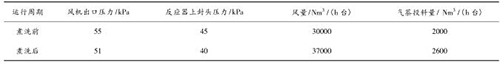 主蒸汽流量計煮洗吹掃后,裝置運行期間無燃爆事故,且裝置運行的風量明顯提高,系統(tǒng)阻力明顯降低,投料量增加?,F(xiàn)將煮洗前后的運行數(shù)據(jù)對比如下: