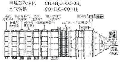 采用國內(nèi)某公司的選擇性催化還原法(SCR)脫硝裝置,按脫硝裝置入口 ** x 濃度120mg/m 3 ,出口 ** x 排放濃度不大于50mg/m 3 進(jìn)行設(shè)計(jì)和設(shè)備配置,SCR 反應(yīng)器按水平布置(見圖1),在壓縮空氣流量計(jì)好大工況下脫硝效率不小于58.34%。