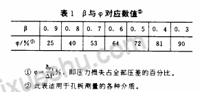 當(dāng)知道直徑比β時(shí),可由表1直接查出孔板不可恢復(fù)壓力損失δp1=ψ△P,免得用公式
