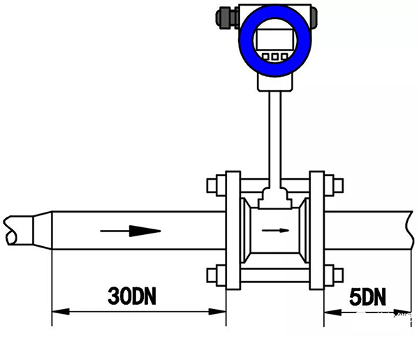 2、調(diào)節(jié)閥盡可能不安裝在渦街流量儀表的上游,而應安裝在壓縮空氣流量計的下游10D處。