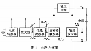 2.3信號(hào)處理電路信號(hào)處理電路雖然不同廠家設(shè)計(jì)的會(huì)有所不同,但基本都由電荷轉(zhuǎn)換器、放大器、低通濾波器、史密特觸發(fā)器及脈沖輸出放大器等幾部分組成,如圖1所示。