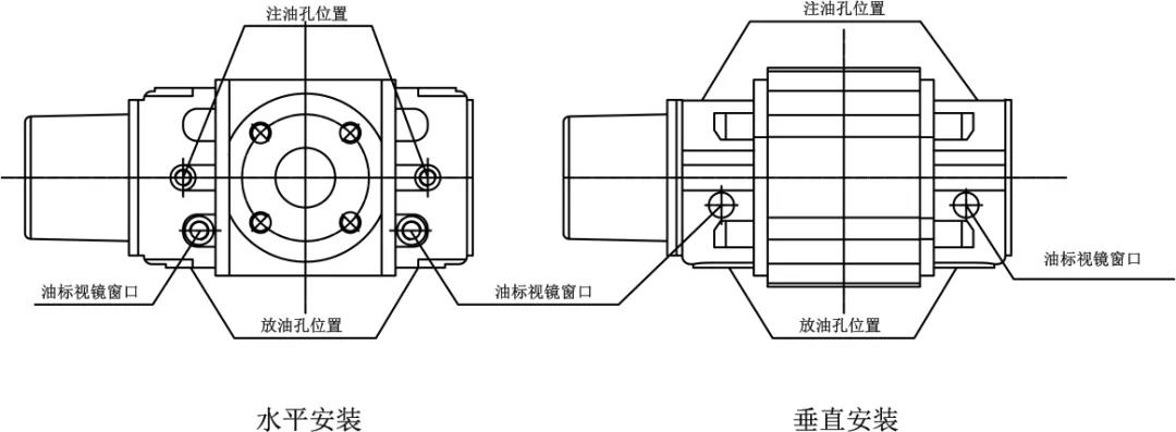 (3)注油孔位于流量計側(cè)上方,放油孔位于流量計下方,如圖所示(垂直安裝、水平安裝都如此);