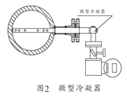 西斯特流量計(jì)本身自帶微型冷凝器(見圖2),可以一體化安裝或分體安裝。兩個(gè)微型冷凝器與探頭集合為一體,既容易保證正負(fù)壓冷凝液面等高(誤差在±1mm內(nèi)),也使安裝變得更加簡(jiǎn)單。試驗(yàn)結(jié)果顯示,這種MT多用途探頭在一體化連接時(shí),蒸汽通過微型冷凝器后進(jìn)入差壓變送器膜盒時(shí)的溫度不會(huì)超過室溫,即使蒸汽溫度高達(dá)550℃。