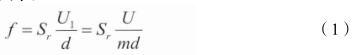 嚴(yán)格而言,斯特勞哈爾數(shù)是一種相似準(zhǔn)則,是在討論流體力學(xué)中物理相似和?;且氲母拍?[4] 。其是用來表征旋渦頻率和阻流體特征尺寸、流速關(guān)系的。在特定雷諾數(shù)區(qū)間中,旋渦的分離頻率和旋渦發(fā)生體與管道的幾何尺寸密切相關(guān),換言之斯特勞哈數(shù)可視為定量。