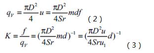 渦街流量計(jì)所測(cè)量的是旋渦發(fā)生體兩側(cè)的平均速度u1,而反映被測(cè)流量的是管道中的平均流速u,它們之間的關(guān)系式為