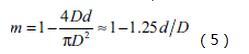 對(duì)流體流通面積而言,可以把旋渦發(fā)生體看作為矩形(寬為d,長(zhǎng)為D,見圖1),面積比為