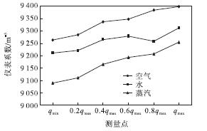 實(shí)驗(yàn)條件下空氣、蒸汽、水為測(cè)試流體介質(zhì)時(shí),各測(cè)試條件參數(shù)如表2所示。