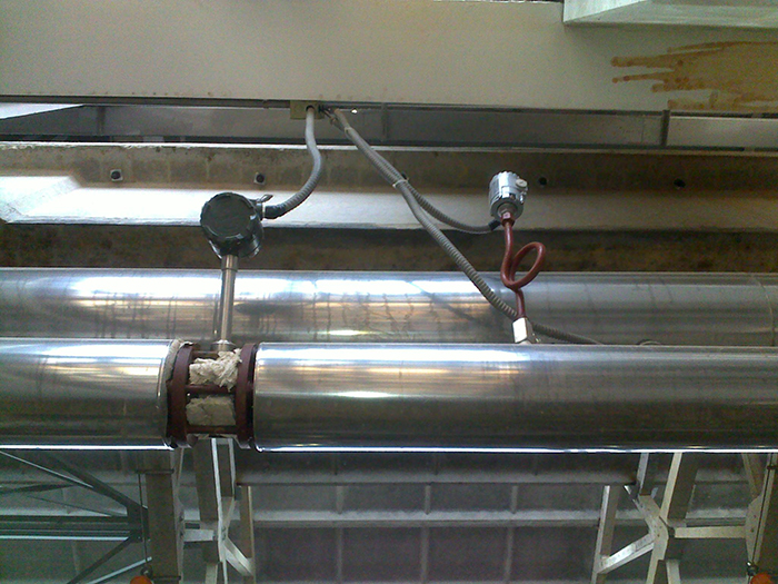 3、傳感器應(yīng)避免安裝在有機(jī)械振動(dòng)的管道上。當(dāng)振動(dòng)不可避免時(shí),應(yīng)考慮在距傳感器前后約2DN處的直管段上加固定支撐架。